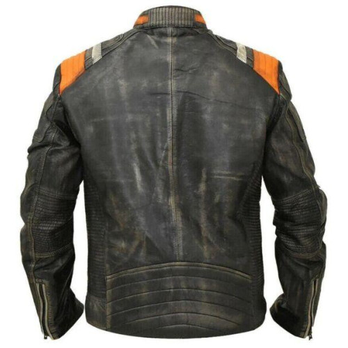 Men's Retro 3 Cafe Racer Biker Vintage Motorcycle Distressed Real Leather Jacket