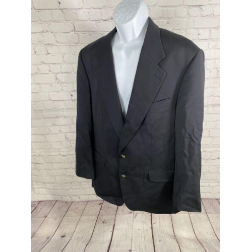 VTG Unbranded Black/ Blue 100% Wool 2 Gold Button Blazer Jacket Coat Men’s 44R