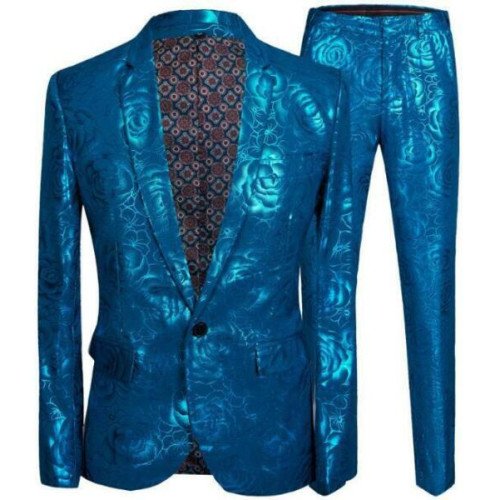 Mens 2PCS Printing Floral One Button V-Neck Straight Pants Slim Fit Size Plus