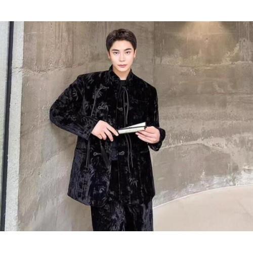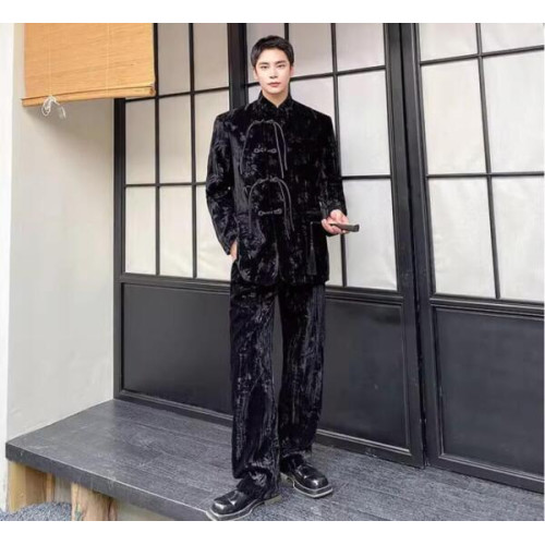 Men's Autumn Fashion Chinese Style Stand Collar Printed PANKOU Coats Pants 2PC