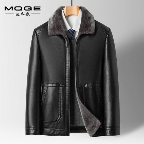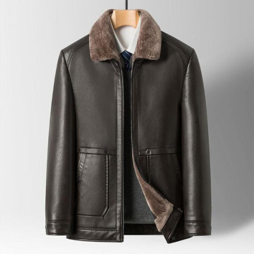 Mens Faux Leather Jacket Business Casual Thickened Fur Lined Winter Dad Coat