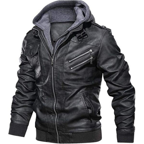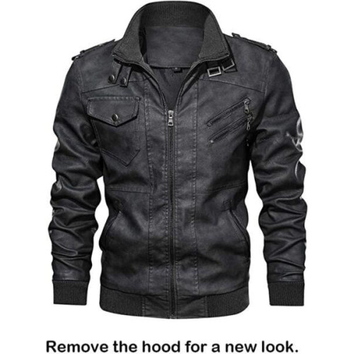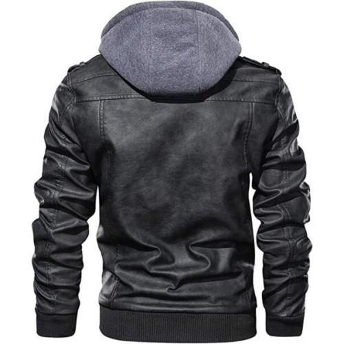 Men's Genuine Real Leather Jacket Black Bomber Winter Hooded Jacket Coat