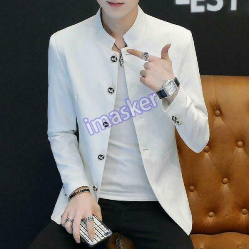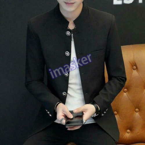 New Mens Blazer jacket Single breasted Slim Fit Stand collar Coats Chinese style