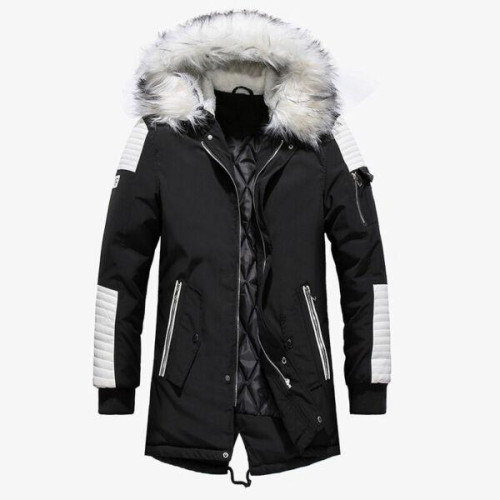 Men Fur Collar Mid Length Coats Warm Outwear Jacket Thicken Pocket Hooded Winter