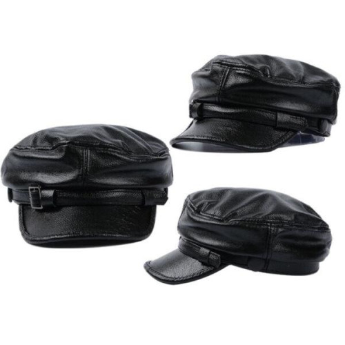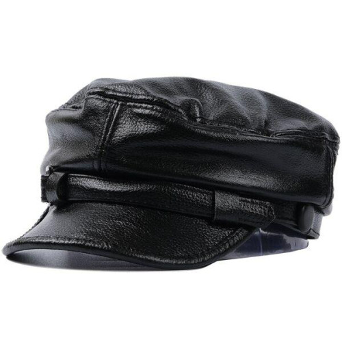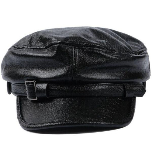 Men's Motorcycle hat Genuine cowhide vintage captain flat top beret Newsboy Cap