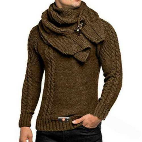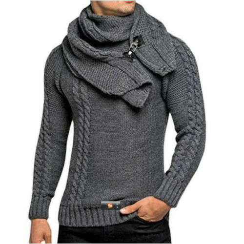 Casual Men's Knitted Jacket Turtleneck Cardigan Winter Pullover Hoodies Sweaters